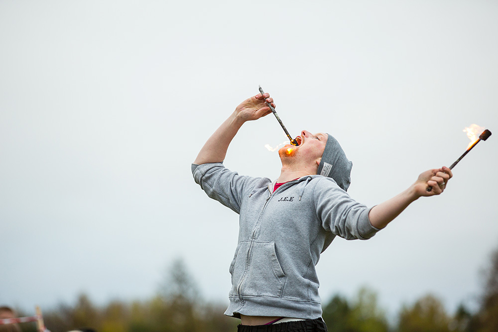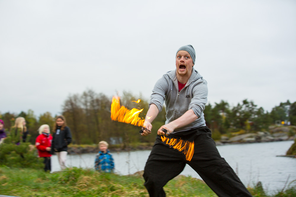 – Jag gick hem till mamma och visade henne ett Youtubeklipp med en kille som höll på med eldpoi, brinnande kedjor som han snurrade runt. Det här vill jag göra, visst är det häfigt, sa jag. Mamma sa tvärnej så då gick jag till pappa. Han tyckte det var jättehäftigt och frågade var man beställde sådana.