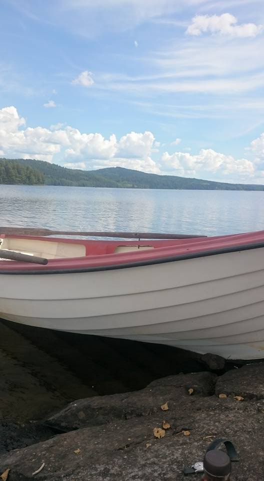 Nu är inte jag någon fiskare mer än någon gång, för det allra allra mysigaste, tycker jag, det är att få ro. Det är så rofyllt… 😀 Bokstavligen, för jag blir så lugn och det är en fröjd att få höra tystnaden. Det är ju en bristvara av det idag. Och sen när jag rott en lång stund ja, då fick Mikael starta motorn och köra iväg. Å vi blev riktigt varma av solen så det blev inte svårt att plumsa ner i plurret.