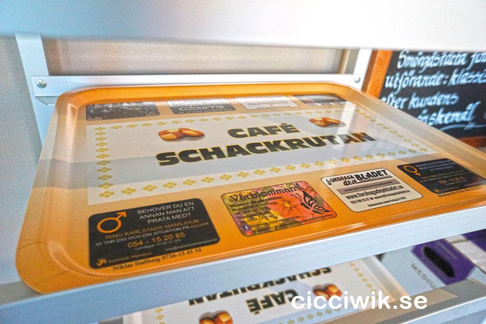 Lina tillägger att hon tycker att det är lite speciellt med Café Schackrutan eftersom det mesta är hembakat. Men bakelser, tårtor och snickarmackor köps in från Järnvägskaféet i Kil.
