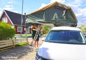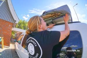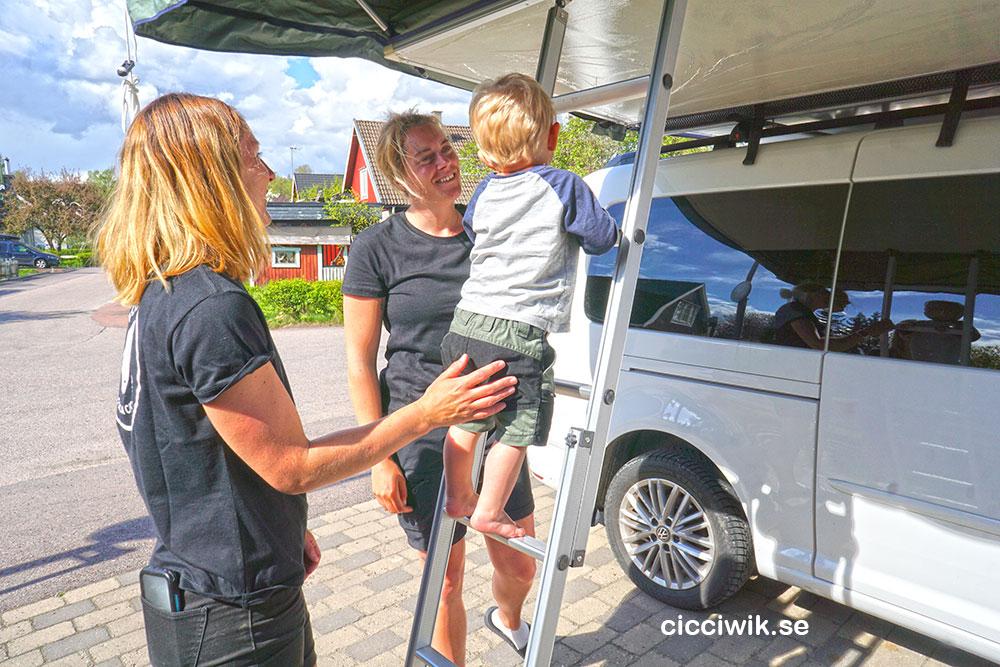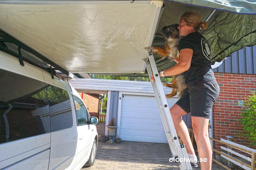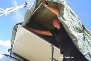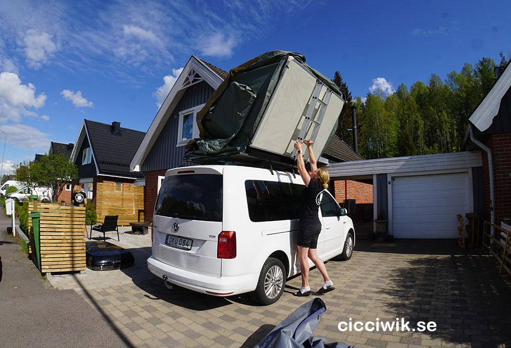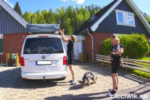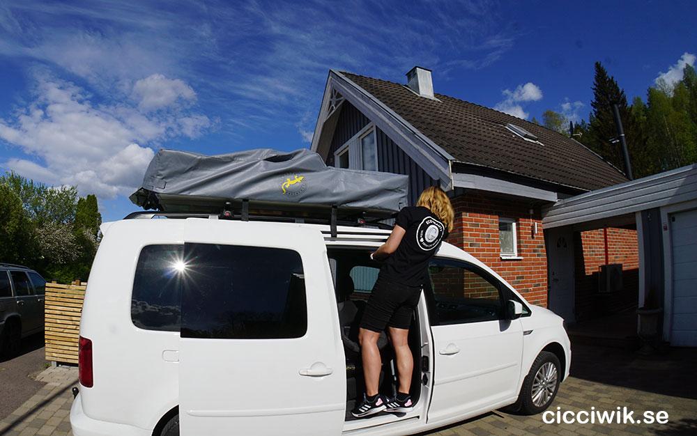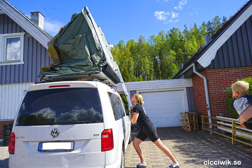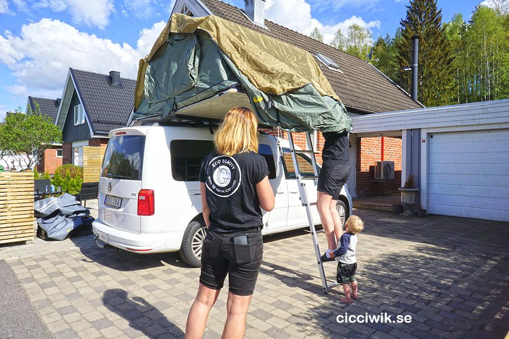– Det går ju lättare att göra det här om vi är två men det går att göra ensam också. Det som man behöver vara två om är när taktältet ska monteras på bilen. Vår bil är dessutom högre än en vanlig personbil och det gör det lite svårare också, säger Theresé.