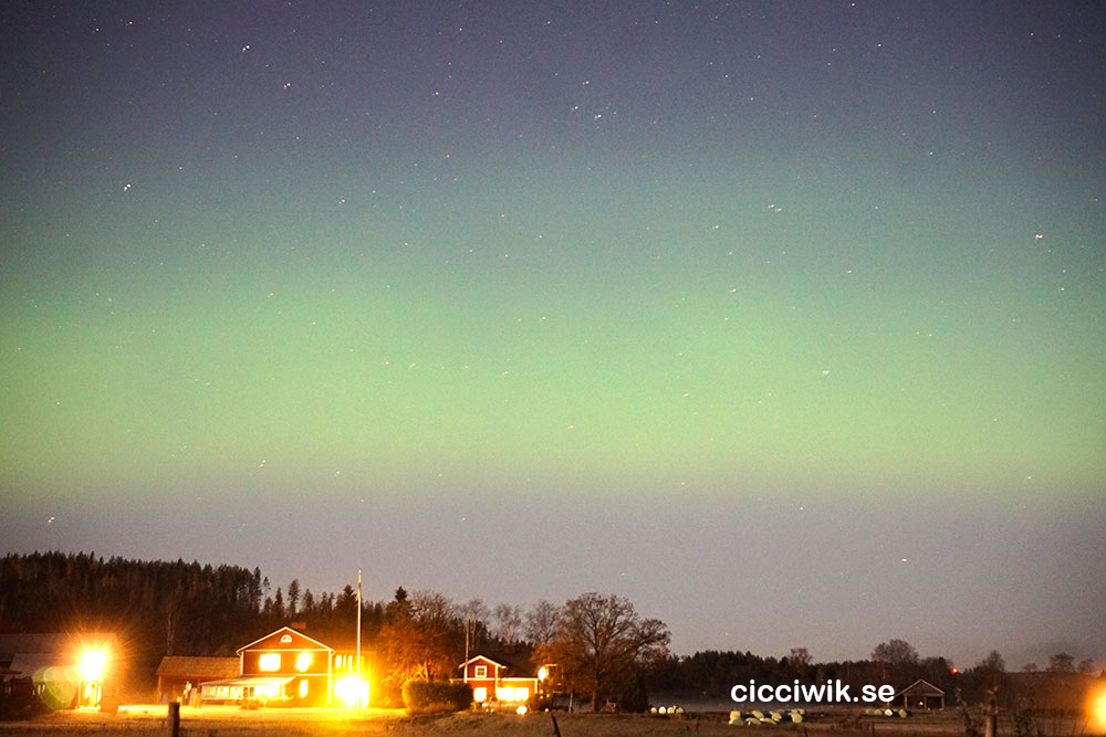 Det finns en app som du kan ladda hem. Den kan berätta för dig när det går att se norrsken där du bor. Igår kväll var det enligt denna tolv procent chans att se norrsken i Forshaga. Vid t-korsningen rakt framför bron över älven i Östra Deje gick det att se norrskenet med blotta ögat. Men kameralinsen såg det bättre…