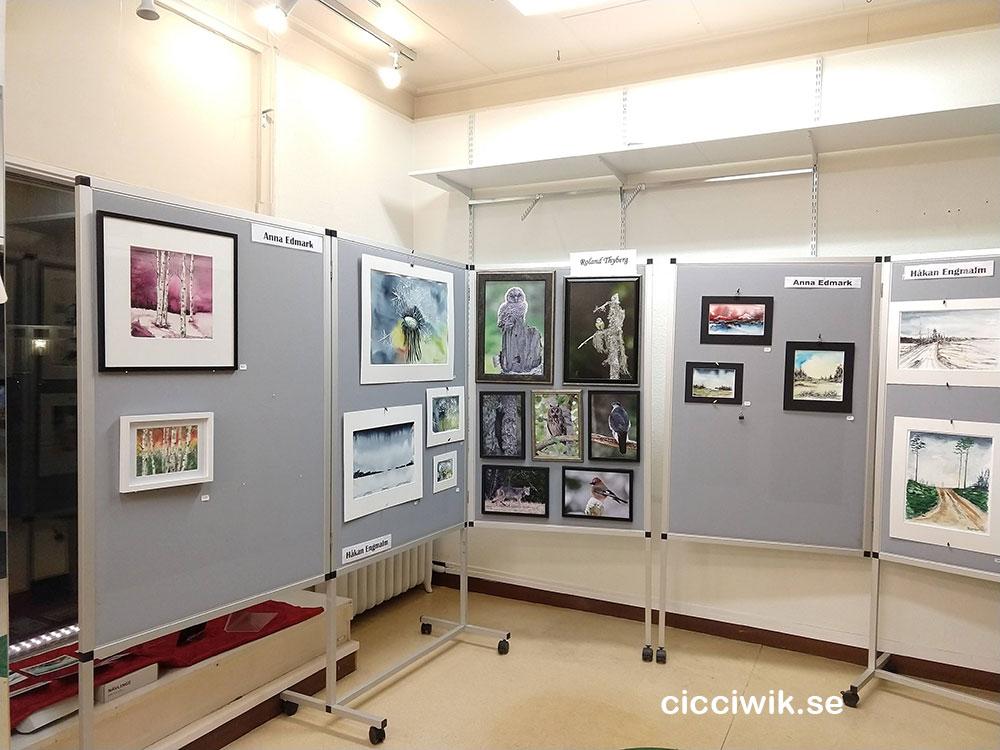 Naturfoton och akvareller fanns att se. Anna Edmark, som till vardags driver ICA Nära i Deje, ställde ut sina fina akvareller för första gången. Håkan Engmalm är mer etablerad utställare och han har ställt ut många gånger nu. Håkans vän Roland Thyberg från Munkfors var tredje utställaren på plats med sina fantastiska naturfoton.